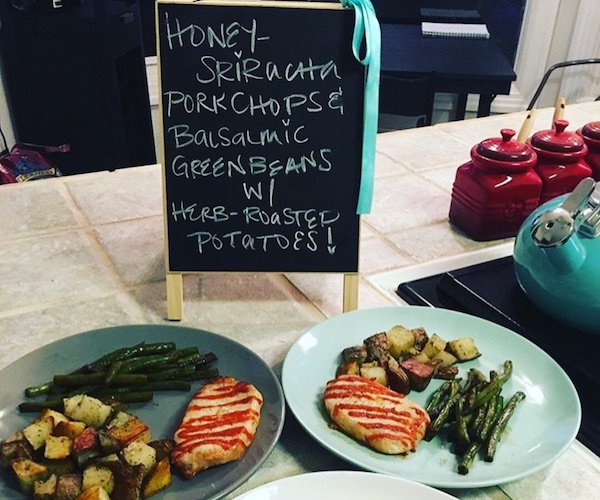 Honey/Sriracha Pork Chops w/ Green Beans & Herb Roasted Potatoes