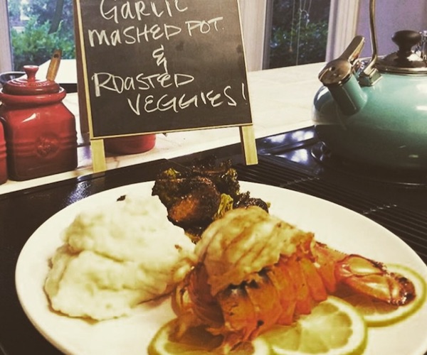 Lobster Tail w/ White Cheddar Truffle Mashed Potatoes and Roasted Brussel Sprouts