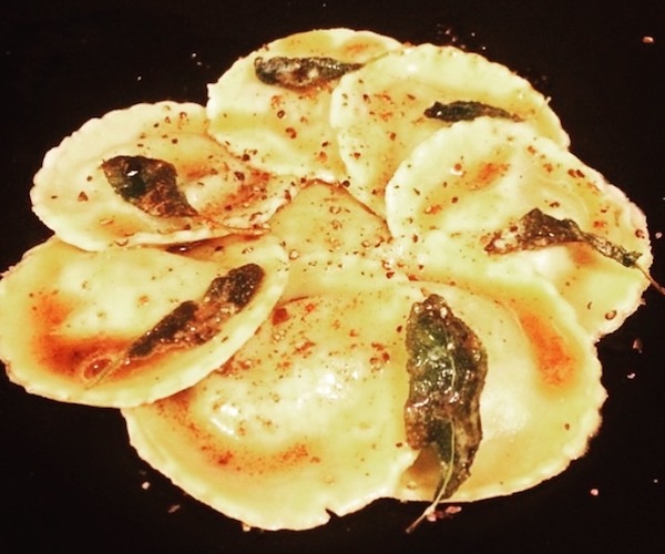 Handmade Goat Cheese/Portobello Mushroom Ravioli in Sage Butter Sauce